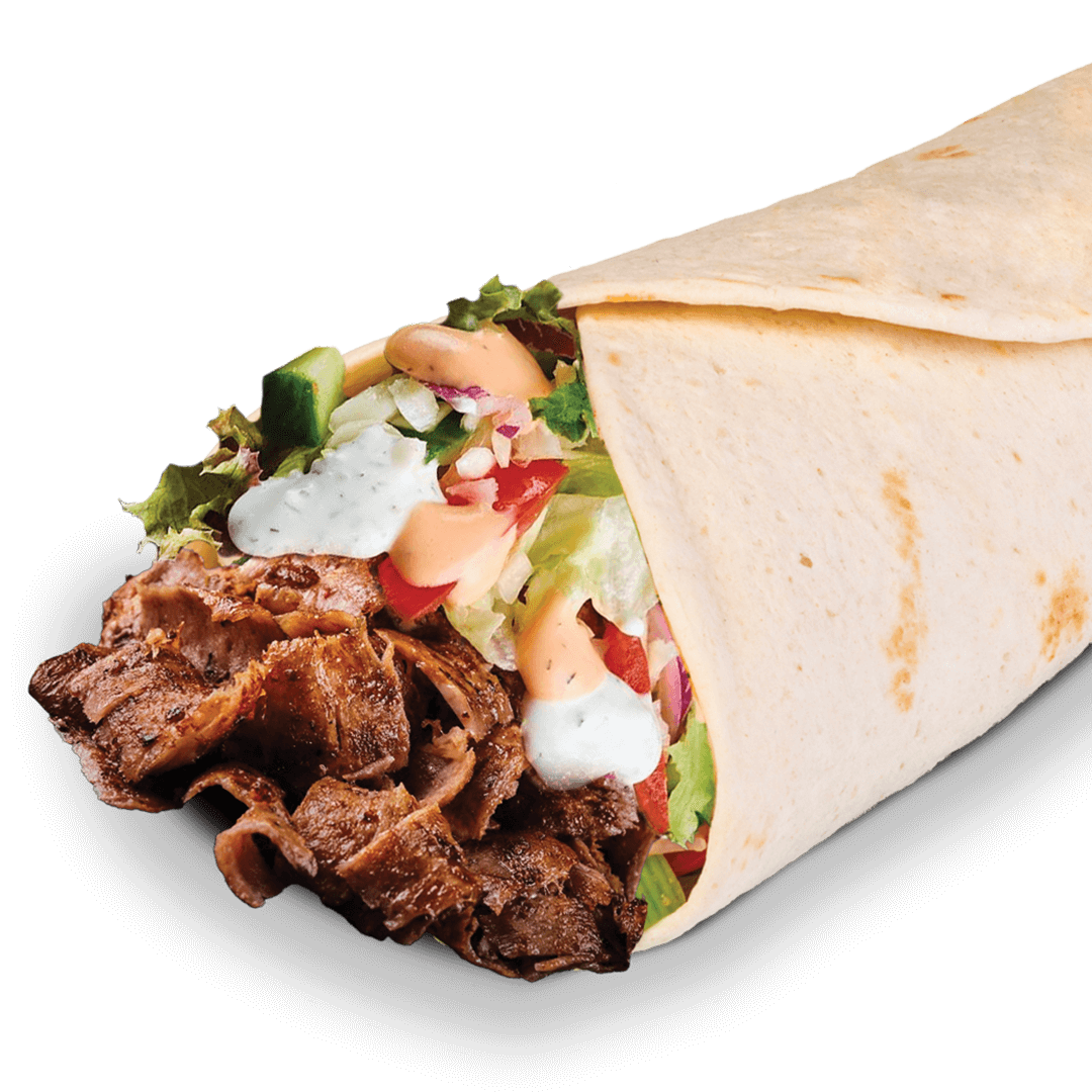 pita garni de lamelles de veau, de crudités et de sauces au choix